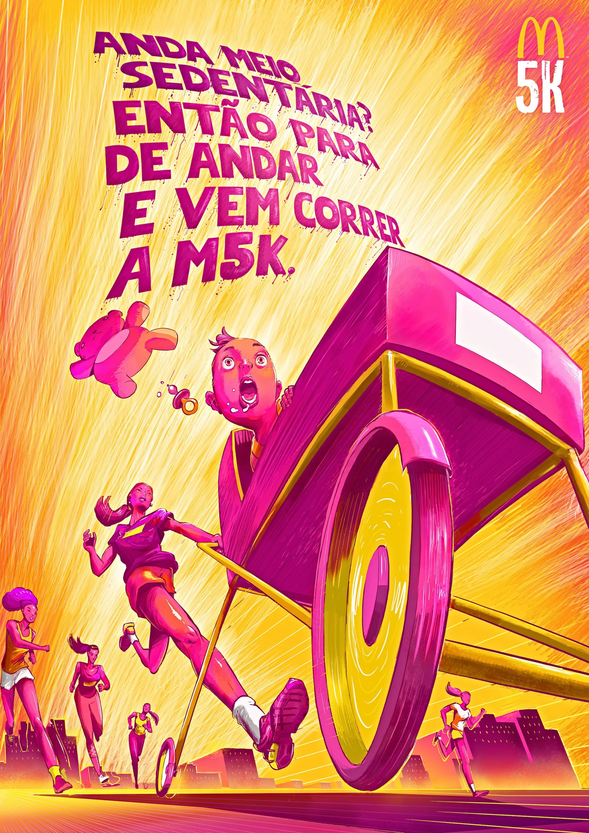 Are you a little sedentary? So stop walking and come run this race. (Word play with the Portuguese verb “andar”. It can both mean “being” and “walking”.)